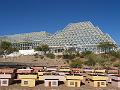 | Ahhh, Biosphere 2 -- the lofty little eco-utopia that could...n't. Biosphere 2 was an experiment to create a manmade sealed ecosystem from scratch. The enormous structure was made to house a small crew of humans completely sealed off from the rest of the world, with potential lessons to be learned for off-world colonization. Unfortunately, it died of very earthly petty problems: management disputes, culminating in a 3am catastrophic breach as the crew escaped. |
