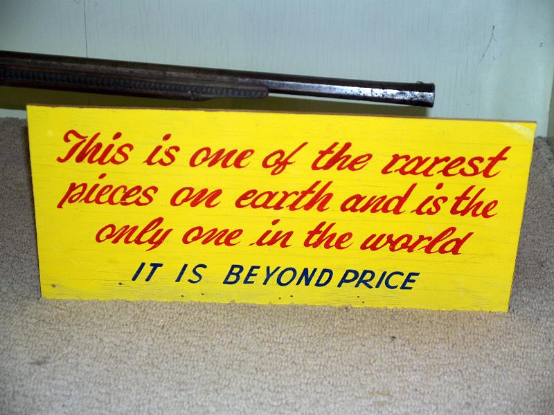P5276369.JPG - Sign: "This is one of the rarest pieces on earth and is the only one in the world -- IT IS BEYOND PRICE"